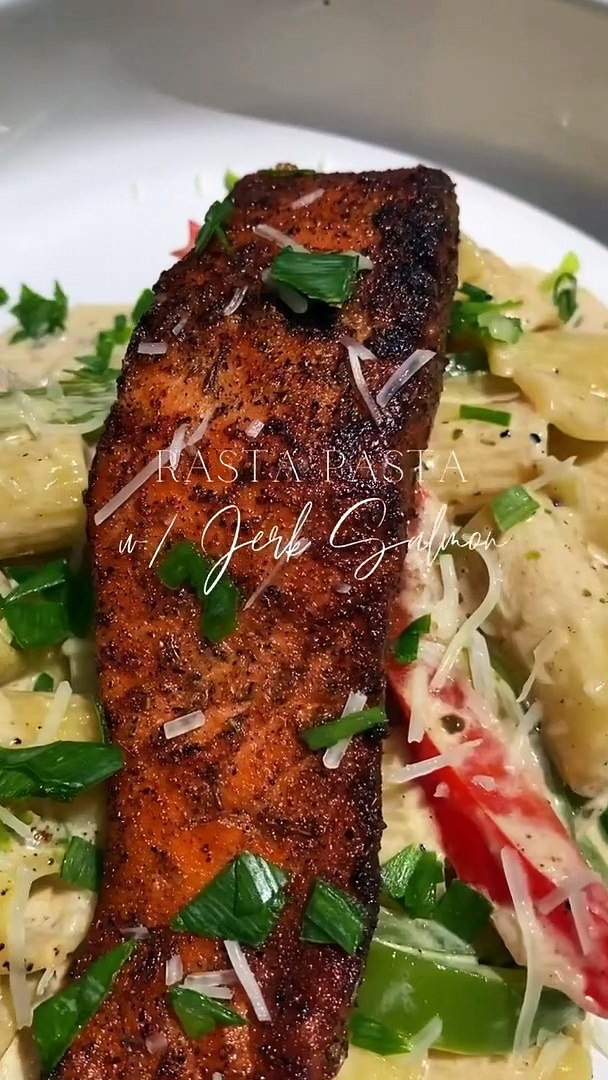 Angie S Soul House Llc On Instagram Jerk Salmon Rasta Pasta Personalorder Goodeatsalways Salmon Pasta Jerk Salmon Rasta Pasta